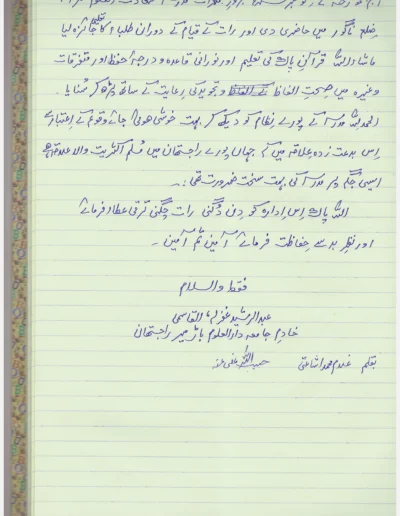Jamiah Saadatul Uloom’s mission is multifaceted. It aspires to disseminate knowledge while nurturing the holistic development of its students, enabling them to navigate both traditional Islamic teachings and contemporary knowledge. By harmonizing Deeni (religious) education with modern curricula, the institution seeks to equip its students with the skills and wisdom necessary to uphold Islamic principles in a rapidly evolving world. Furthermore, it aims to cultivate a strong sense of moral integrity, resilience against the corrosive influences of Western materialism, and a commitment to fostering societal harmony and security. Through these endeavors, Jamiah Saadatul Uloom endeavors to produce individuals who not only excel academically but also embody the virtues and values inherent in Islam, contributing positively to their communities and the world at large.